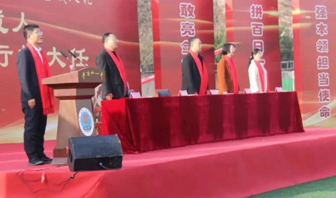 高三(15)班郑一鸣同学代表全体高三学生发言并表态,在最后的一百天里,将以全部的精力投入高考的复习中,以前所未有的毅力投入到决战的冲刺中,心存念想,不内耗,书写人生壮丽的篇章,描绘未来美好的蓝图。
