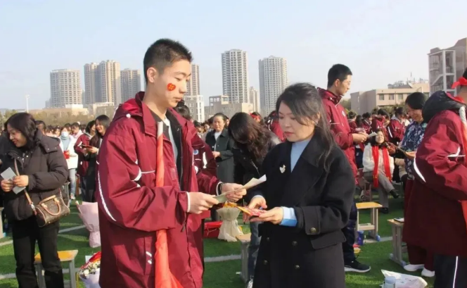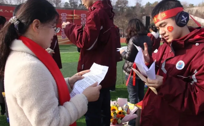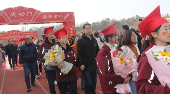 最后,在全体高三师生、家长的加油、祝福声中,伴随着雄壮激情的音乐,在老师和家长的陪伴下,同学们与家长携手走过红毯,昂首阔步踏入成人门,走进成才门,迈向成功门,开启人生的新篇章,走向美好未来。