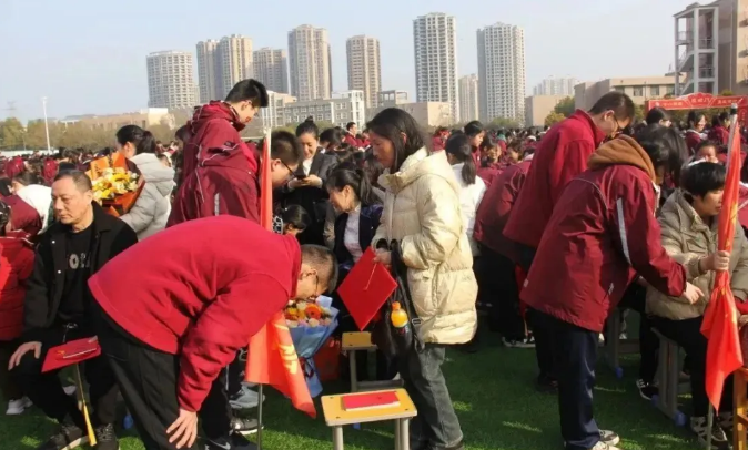 学会感恩是成年后的第一堂课。同学们弯腰鞠躬,感谢父母的养育之恩,感谢老师的教诲之恩,感谢国家的护佑之恩。