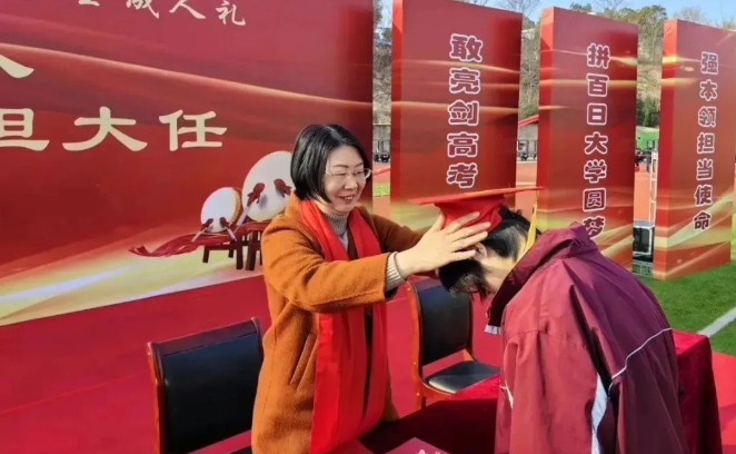 校长常耘代表校党委书记邓红涛和校领导班子,向迈入成人行列的高三学生表示热烈的祝贺,并向一路呵护同学们成长的家长、亲朋、老师等表示诚挚的感谢。她语重心长地嘱咐同学们:要心怀感恩,胸怀家国,做一个有大爱的人;要超越自我,勇往直前,做一个高品质的人;要承担责任,砥砺奋进,做一个勇于担当的人;要丰富自我,强身健体,做一个珍爱生命的人。希望同学们牢记一中“厚德、明理、博学、慎行”的校训,勇敢拼搏、永续奋斗,恪守诺言、严于律己,用心演绎、用爱诠释,诚于信、敏于行。厚德明理以成人,博学慎行担大任,努力做一个感恩知爱的人,一个高尚诚信的人,一个乐观豁达的人,一个踏实勤奋的人,一个德才兼备的人。为梦想不惧艰辛、拼百日大学圆梦,时感念家国护佑、强本领担当使命。不负青春韶华,绽放人生芳华,努力成就最美好的自己。