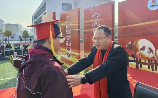 3月3日上午,平顶山一中在田径运动场上隆重举行主题为“厚德明理以成人 博学慎行担大任”2024届学生成人礼暨高考誓师大会。学校领导、全体高三师生及家长共同见证了这场青春盛会。大会由校党委委员、副校长曹伟兴主持。
