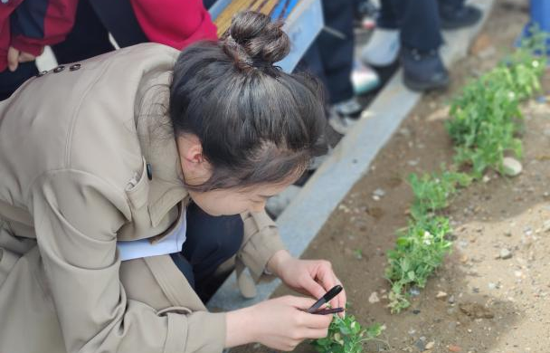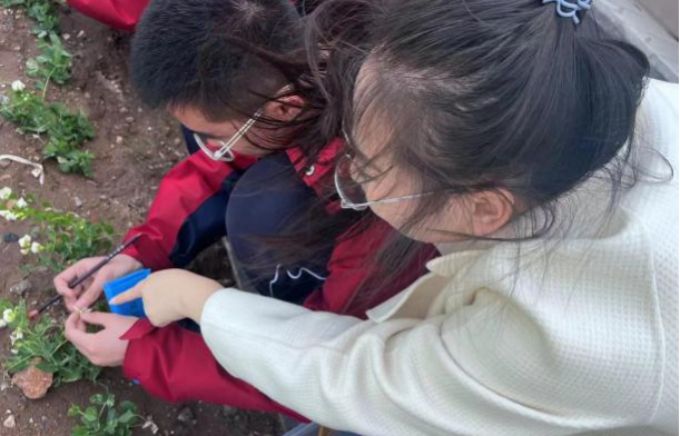 为带领学生重走科学家之路,体会理论与实践的联系,探寻科学的奥秘,感知生命的魅力。2023年4月6日下午,乘着和煦的春风,在明媚的阳光里,平顶山市第一中学高一生物教师杨璞、刘雨姣、宋梓菲带领社员在平顶山市第一中学校内的河南省生物一级学科基地生物园实践中心开展了孟德尔实验探索社本学期第一次社团活动——豌豆人工异花传粉实验。