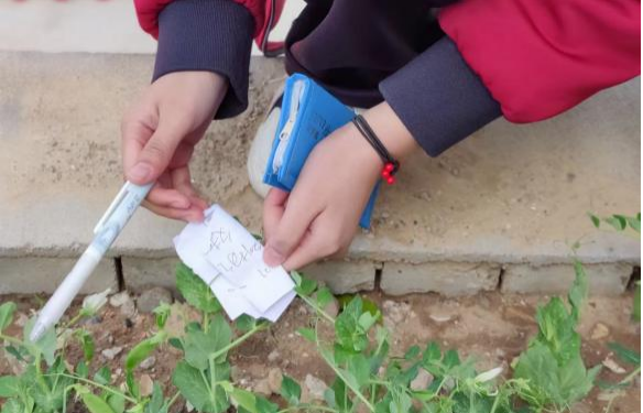 在完成最后一步的套袋处理后,同学们对自己进行人工异花传粉的植株标记好相关信息。