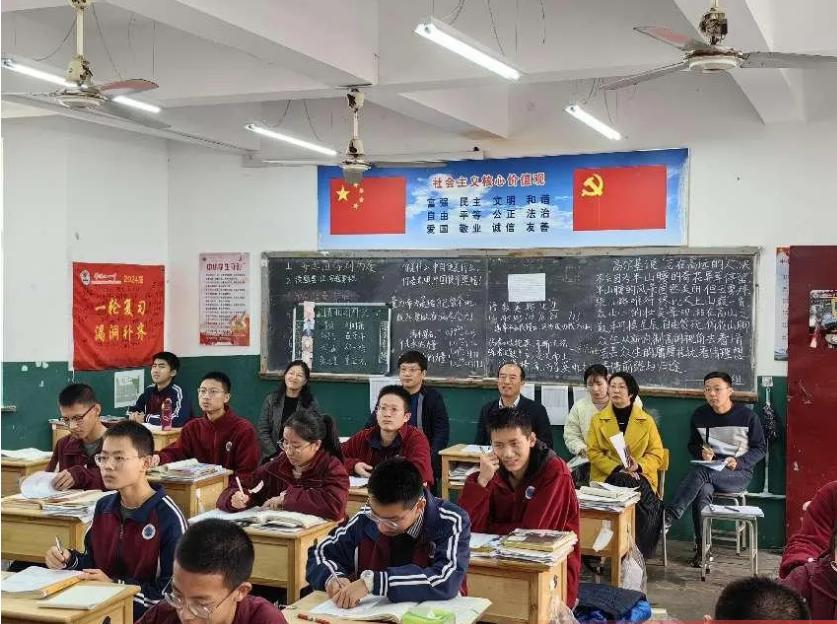 面对当前新课标、新教材、新高考,学校在提升教师落实核心素养能力、培养学生关键能力和必备品格等方面采取了哪些应对措施?影响学校教育教学质量提升的制约因素有哪些?11月22日,市教体局党组成员、副局长尹卫东,市教育体育发展中心主任薛建军,市基础教育教学研究室副主任苗巧云一行莅临我校,通过听课、听取汇报、召开座谈会等形式开展普通高中教育教学高质量发展调研活动。